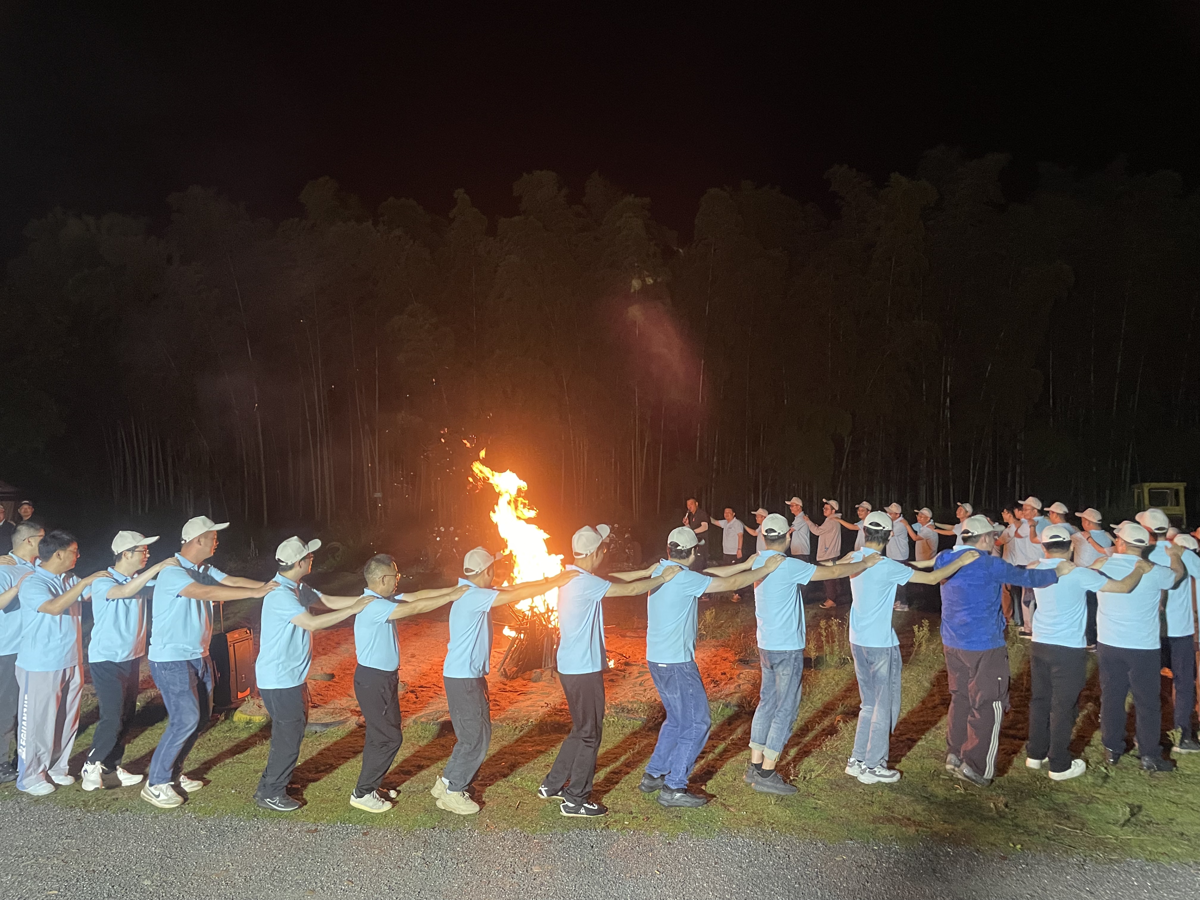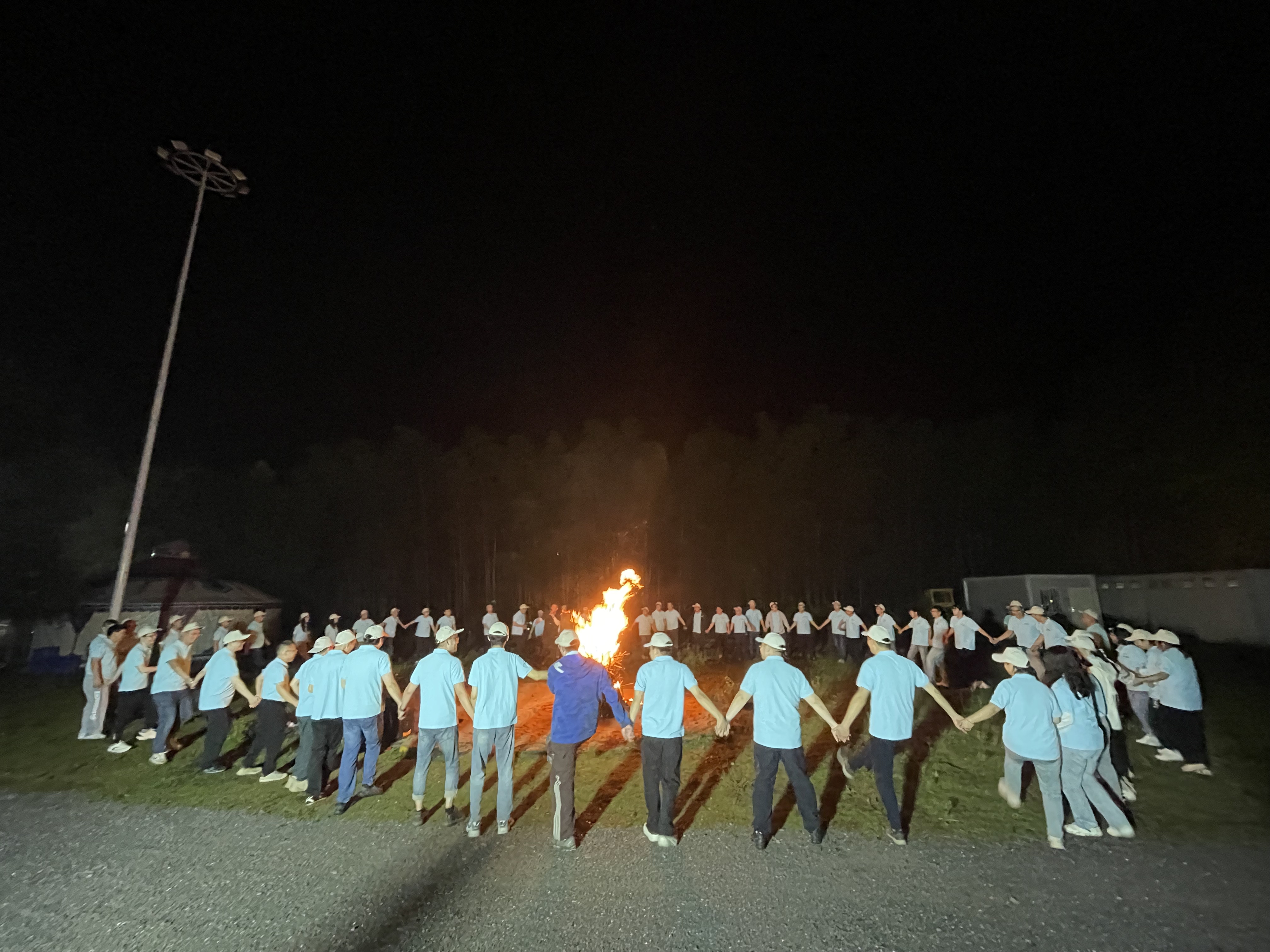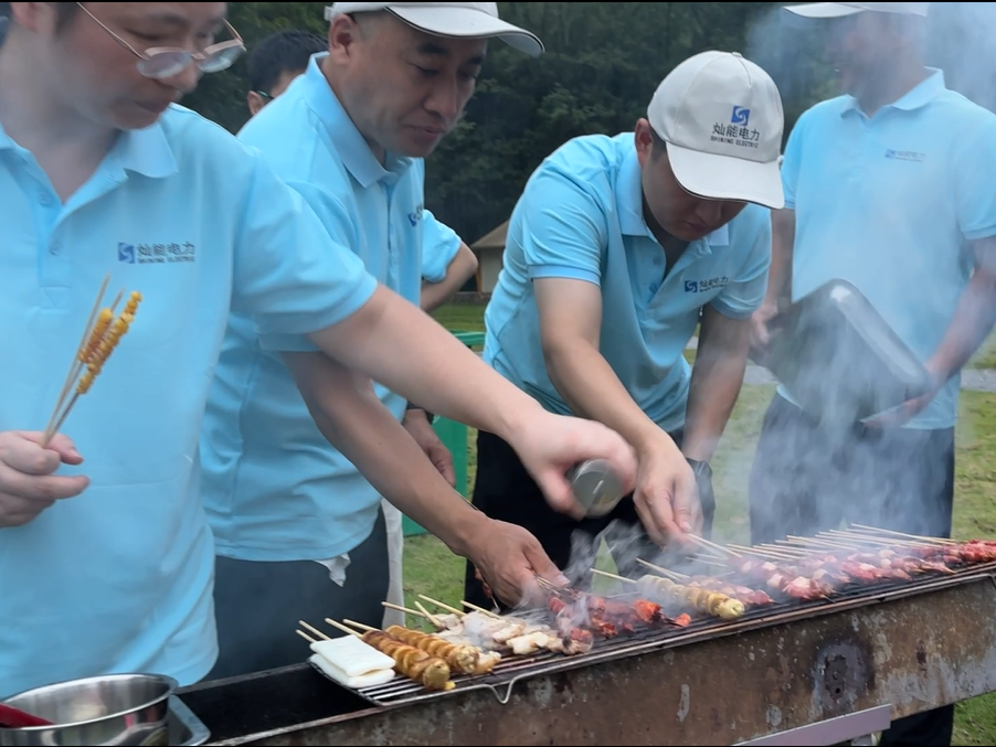 夜幕降臨,啤酒配燒烤的美食盛宴后,一場(chǎng)篝火晚會(huì)點(diǎn)燃了大家的激情。熊熊篝火象征著燦能電力蒸蒸日上的發(fā)展前景與薪火相傳的企業(yè)文化。圍繞著火堆,大家手拉著手,唱歌跳舞,共享美好瞬間。